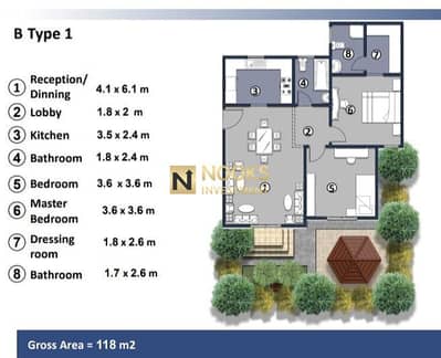 التقسيم الداخلي: 118 متر 2 غرف نوم / 2 حمام
