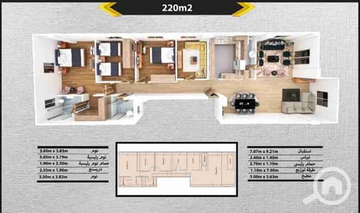 ٣ غرف - ليفينج - ٣ حمام - ٣ قطع ريسيبشن - مطبخ