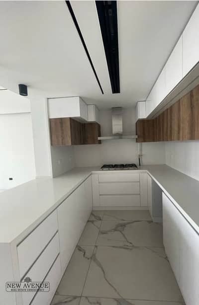 مطبخ مجهز بخزائن HBL وأسطح عمل من الكوارتز