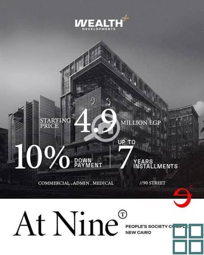 امتلك مكتبك الان بمقدم 10% وخطه سداد علي 7 سنوات دايركت علي شارع التسعين الشمالي - القاهره الجديده