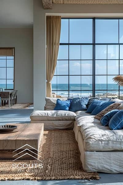 إطلالة بانوراما 100% على البحر — خصوصية كاملة وتصميم فندقي فاخر - الموقع حيوي ومتكامل الخامات وجاهز للمعاينه