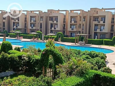شالية للبيع لقطة مفروش بالكامل بالاجهزة و التكييفاات على حمام السباحة مباشرة القرية تتمتع بالكثر من الخدمات و المرافق