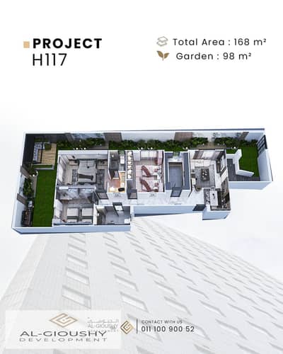 شقة 168م بمدخل خاص في H17 – شمال الرحاب – فيو شارع رئيسي 40م