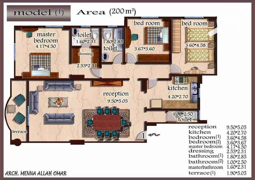 ثلاث غرف وثلاثة حمام ومطبخ وريسبشن كبير