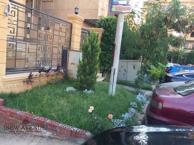 شقة أرضية للبيع في النرجس تقع في مبنى كورنر، وتطل مباشرةً على حديقتين واسعتين - Al narges - New Cairo