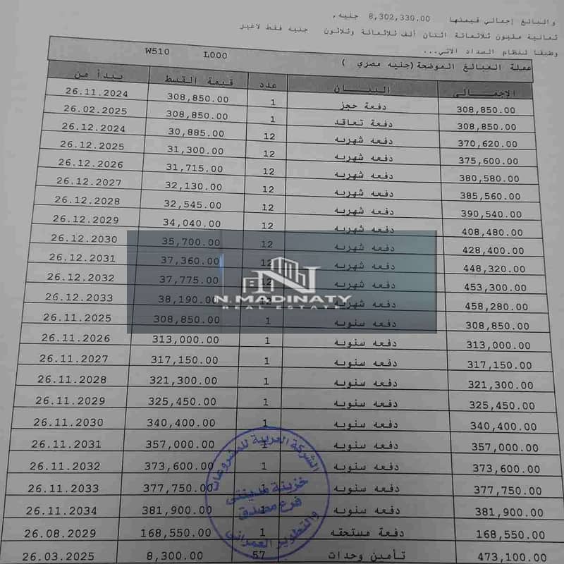 إجمالي عقد 8,300,000 بالتقسيط علي 10 سنوات