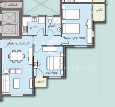105 متر مربع: 2 غرف نوم + 1 حمام + ريسبشن قطعتين