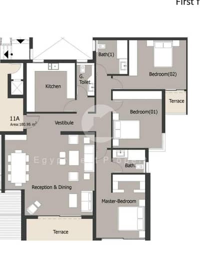٣ غرف نوم (١ ماستر) + ٣ حمام + ٢ تراس