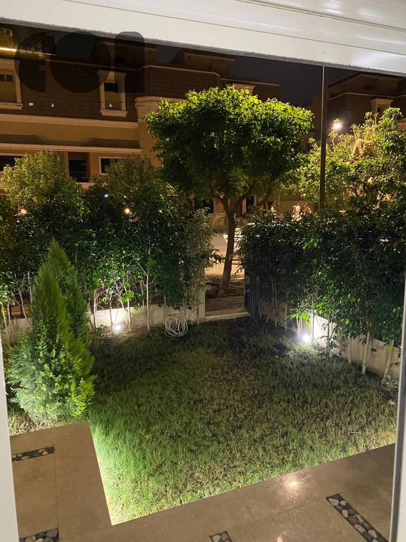 شقه للايجار بجاردن اماميه و خلفيه تشطيب الترا سوبر لوكس بكومبوند سراي