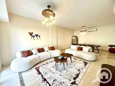 فرصة مميزة جدًا للإيجار المفروش في ميفيدا، شقة أول سكن بفرش فندقي كامل أول استخدام وتشطيب ألترا سوبر لوكس، مع مساحة واسعة 235م وفيو مباشر على البوول.