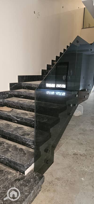سلم رخام اسود و مشايه رخام بمدخل الفيلا