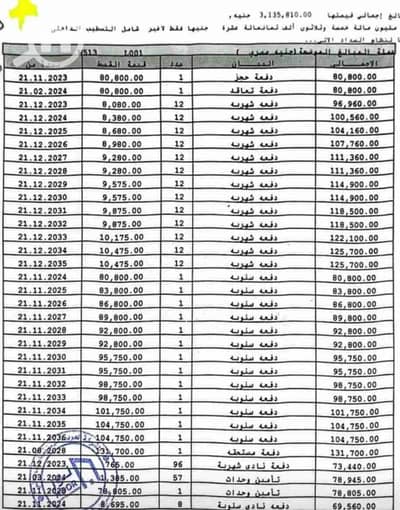 استيلام بعد سنة وبالتقسيط علي 13 سنة