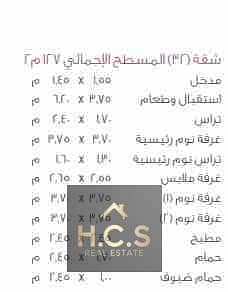 • تـقسيمـة الشقـة مسـاحـة 127م :-