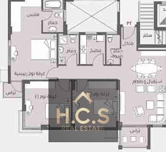 (3 غـرف ومنهـم غرفـه ماستـر - 3 حمـام - ريسبشـن- مطبـخ -2 تـراس )