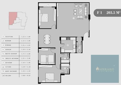 3 غرف (ماستر) + ليفنج + 3 حمامات