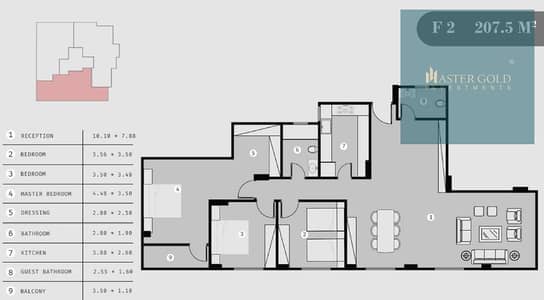3 غرف (ماستر) + ليفنج + 2 حمامات