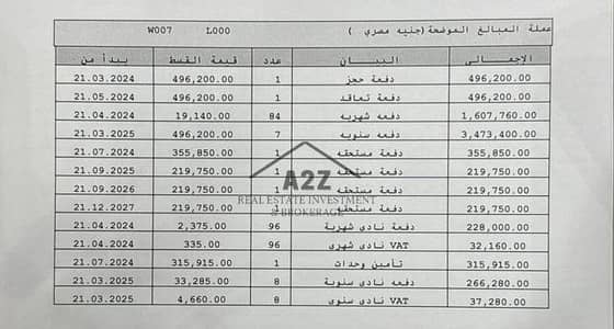 مرفق مع الصور جدول اقساط الشقة بالكامل