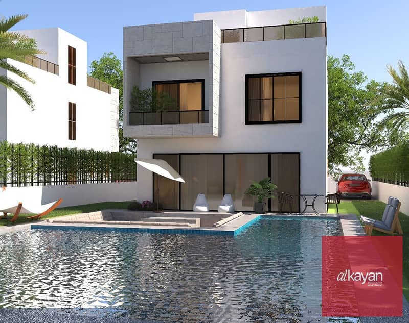 فيلا مستقلة فاخرة 290م بتصميم راقي وموقع مميز خلف مول العرب في كمبوند بارك فالي