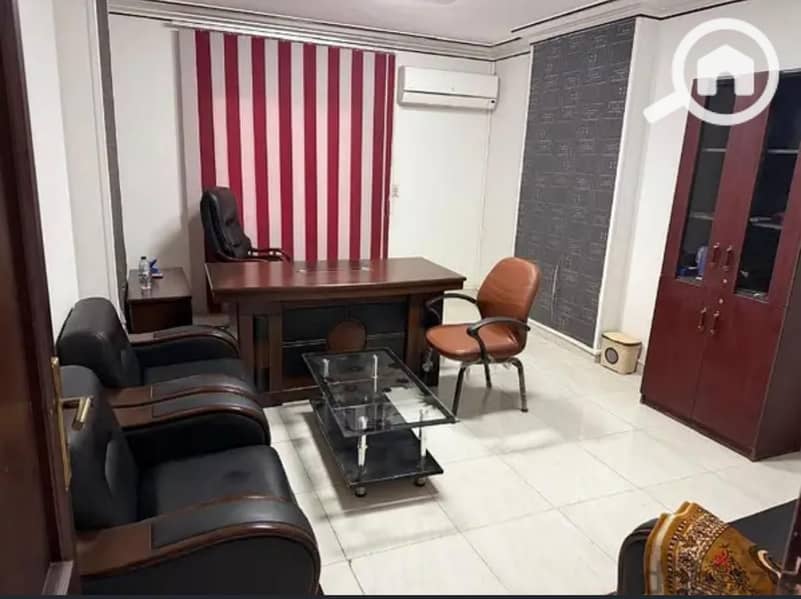المكتب يتكون من متر ٣ غرف وريسيشن كبير ومطبخ وحمام ويوجد تكيفات ،، ( بالفرش او بدون )