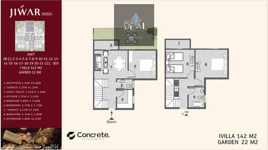 - المساحة: 142 م² + جاردن 22 م²
