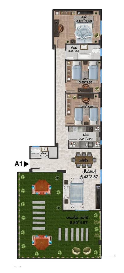 مواصفات الشقه : ( 3 نوم / 2حمام / ريسبشن / تراس امامي )