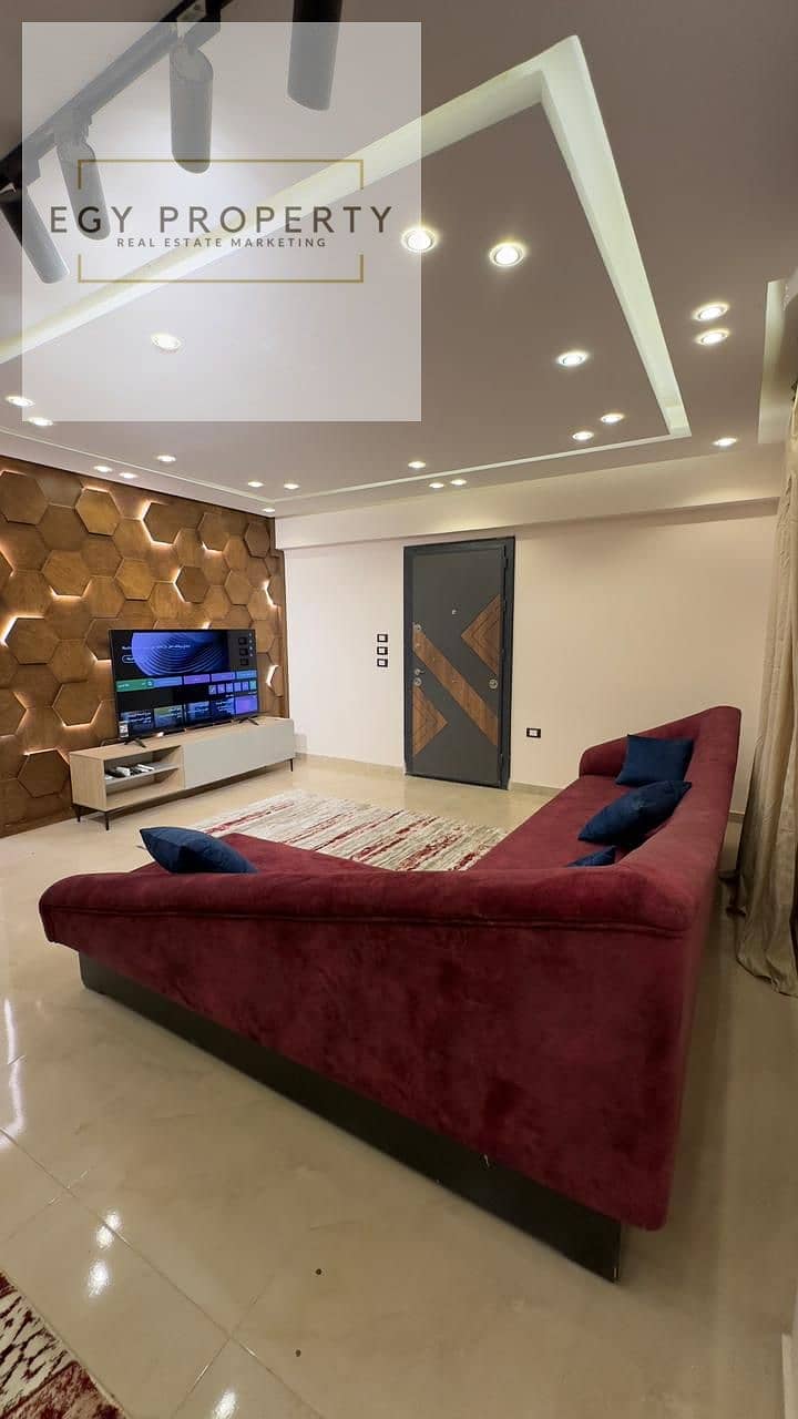الشقة مفروشة بالكامل ومكيفة بالكامل، مع توفير تكييف مستقل لكل غرفة وشاشة لكل وحدة، لضمان الراحة التامة للسكان أو المستأجرين. هذا التجهيز يجعل الشقة جاهزة للسكن الفوري أو التأجير الفندقي بدون أي تكاليف إضافية، مما يزيد من قيمتها الاستثمارية بشكل كبير.