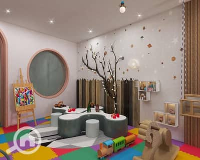 منطقة الأطفال - صالة الألعاب الرياضية - ارتفاع مزدوج 4.5 متر - نافورة - ميزة مائية - أبواب أمان - موقف سيارات