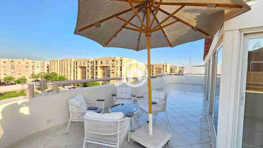 فرصه للايجار في الرحاب شقه مفروشه مع مسطح مفتوح امام منطقة المطاعم وخطوات للسوق القديم بمساحه ١٢٠م + ١١٠م مسطح مفتوح فرش مودرن والشقه تشطيب خاص بسعر مغري