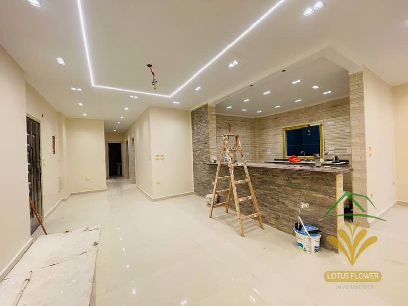 ريسيبشن كبير ، 3 غرف نوم منهم غرفة ماستر بدريسنج ، ليفينج ، 3 حمام ، مطبخ