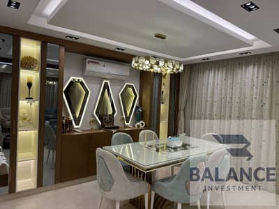 شقة فاخرة للبيع بفرش مودرن كامل وأجهزة جديدة في قلب التجمع الخامس داخل كمبوند Azad بمساحة 145م، دور ثالث، جاهزة للسكن فورًا، وتشطيب راقٍ يوفّر أعلى مع