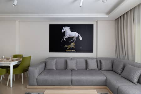 الشقة مؤثثة بالكامل وتتميز بتصميم عصري، مما يجعلها مثالية للعائلات سواء للإقامة القصيرة أو الطويلة.