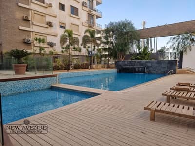 شقة متشطبة مساحة كبيرة و فيو مميز علي حمام سباحة