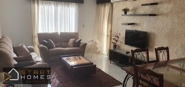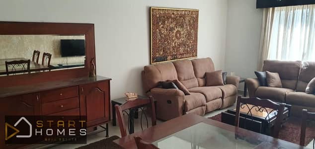شقه للايجار المفروش 131م في كمبوند مدينة الرحاب علي فيو ومساحة كبيرة ومكيفه بالكامل فرش مودرن