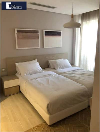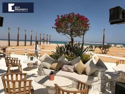 شاليه للبيع 130م تشطيب كامل بالتكيفات مباشرة علي البحر في أزها الساحل الشمالي مدار