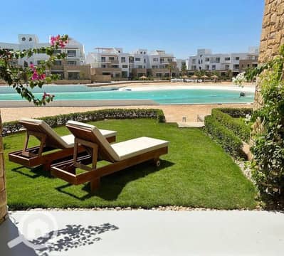 شاليه متشطب بالكامل بالتكييفات والمطبخ جاهز للمعاينة والسكن فيو بحر كامل للبيع في قرية سوان ليك الجونة swanlake gouna دقائق من الغردقة و سوما باي