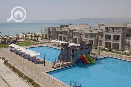شاليه 150م (3 غرف) متشطب بالتكييفات للبيع: في أروما السخنة، بفيو على اللاجون ومقدم 10% على 10 سنين.