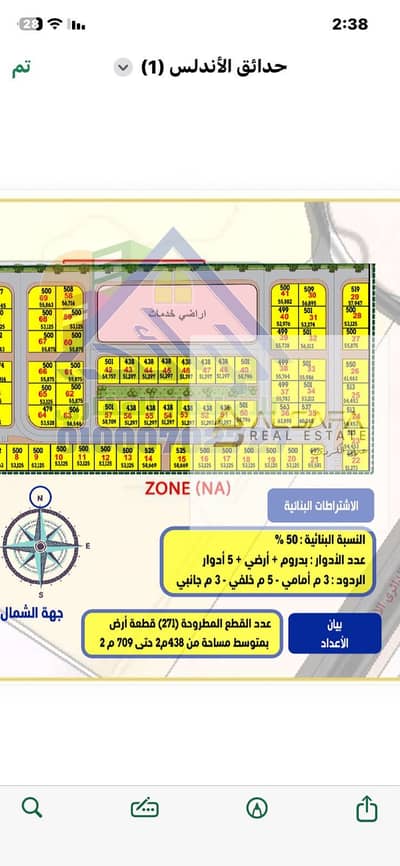 للبيع قطعه ارض في حدائق الاندلس NA علي الرئيسي بسعر تجاري