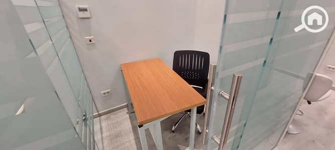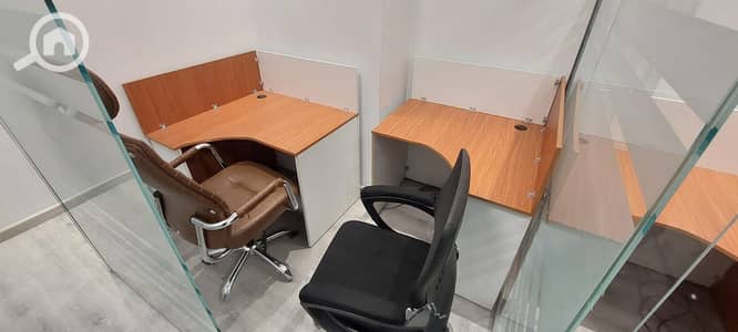 * تقسيم عملي: رسيبشن + غرفتين مغلقتين + 4 أماكن عمل (Work Stations) بزجاج فاصل