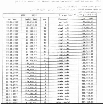 الأقساط مجمعة بنظام قسط واحد سنويًا في شهر 4