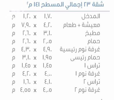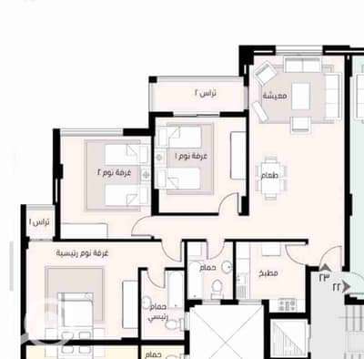 التقسيمة الداخلية: 3 غرف نوم + 2 حمام (منهم ماستر) + ريسبشن + مطبخ + 2 تراس
