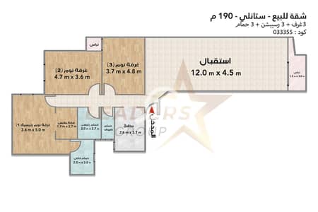 شقة للبيع ستانلي (ش عبدالحميد العبادى) 190 م