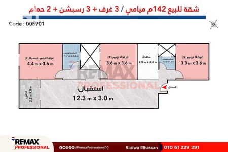 شقة للبيع 142 م ميامي ( متفرع من العيسوي) - 4,000,000 ج كاش - الوكيل / رضوي الحسن