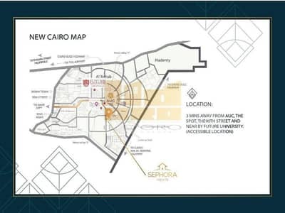 موقعنا بين الجامة الأمريكية والتسعين الجنوبي ٤ دقائق بظبط من عند الجامعة الأمريكية علي ميدان seashell بعد ال patio 7 وأمام la Vista ،٢٠ دقيقة من كايرو فيستيفال و الدائري و ١٠ دقائق لطريق السويس، ٥ دقائق من طريق العين السخنةو ٣٠ دقيقة للعاصمة الإدارية الجديد ، موقع فريد لن يتكرر يحقق نسبة كبيرة من معادلة استثمار او سكن.