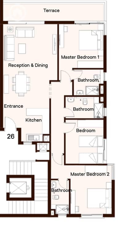 يتكون من : ريسبشن - مطبخ - 3 غرف نوم -3 حمام