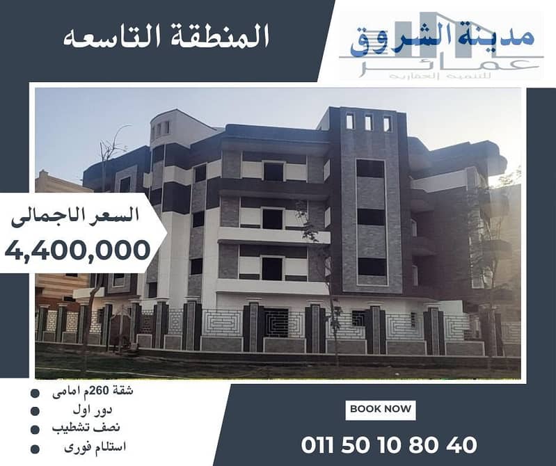 شقة للبيع في مدينة الشروق – 260م أمامي بحري بموقع راقٍ