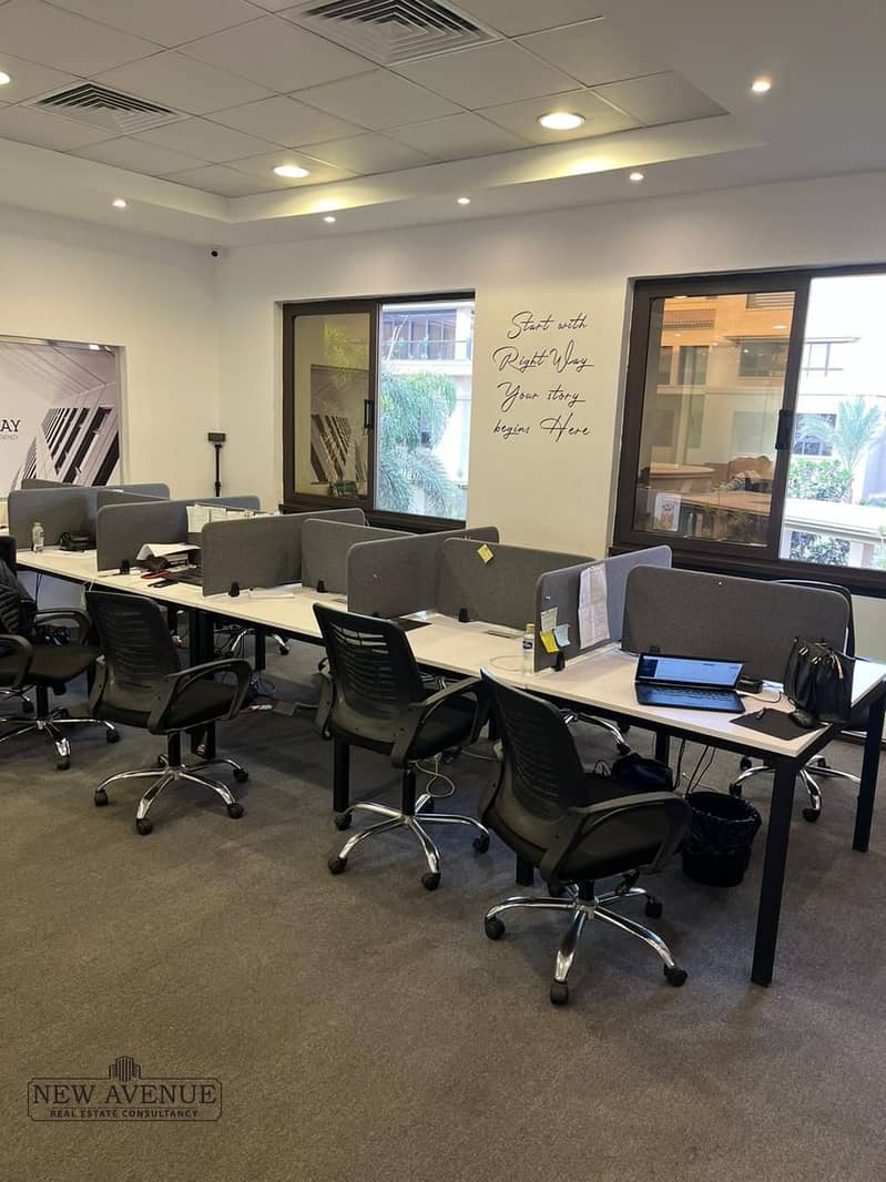 مكتب مُجهز بالكامل بمساحة ١٣٧ مترًا مربعًا للإيجار في قطامية هايتس