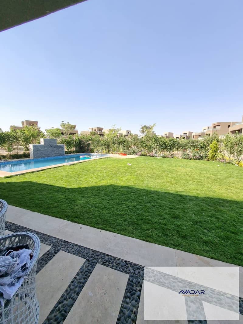 فيلا مستقلة للبيع بحمام سباحة متشطبة و مفروشة فى بالم هيلز