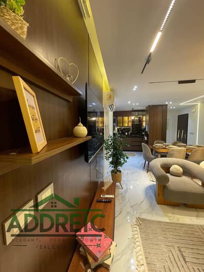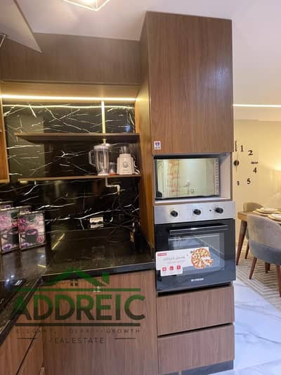 شقة 3 غرف سمارت كنترول بالكامل، مكيفة، غرفة ماستر بحمام، مفروشة وفرش زيرو. إيجار شهري. قريبة من كرافت والساوث وبوابة 4 بمدينتي B11