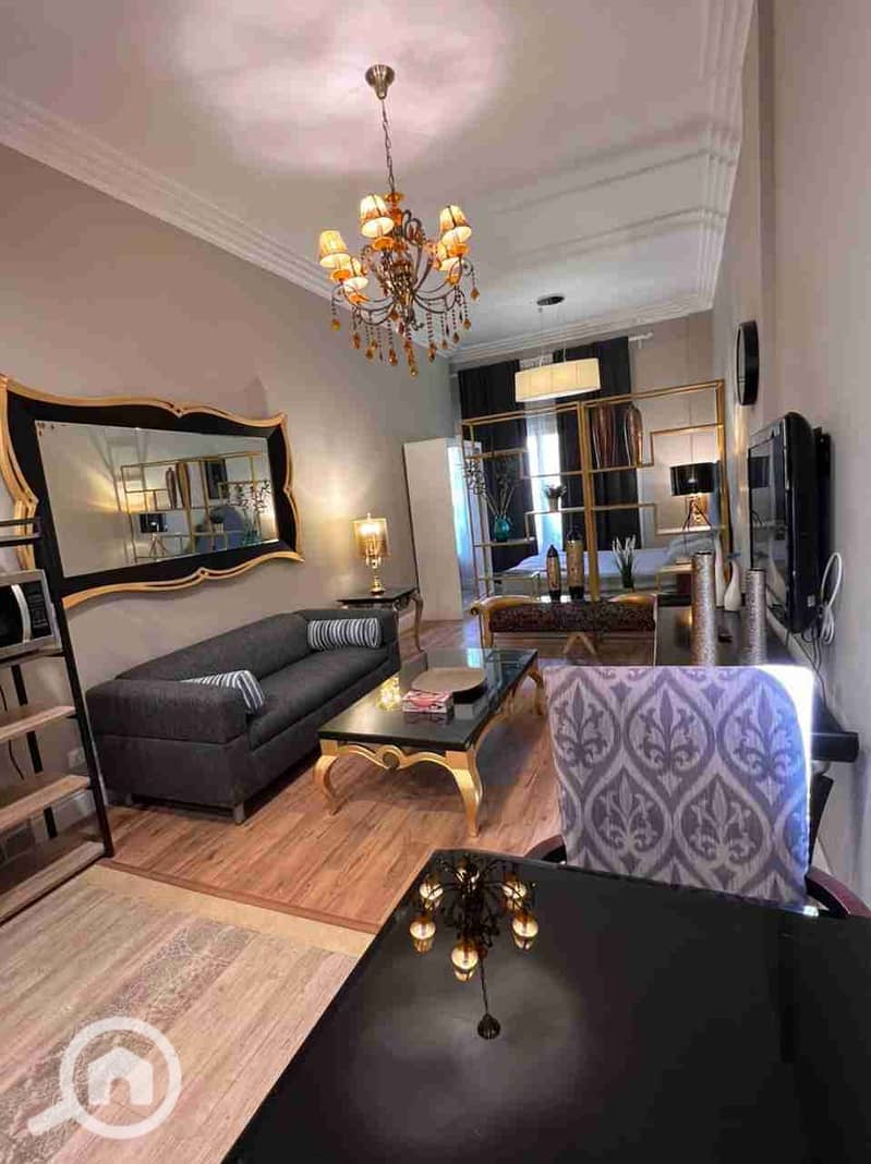 أستديو أرضى إيجار مفروش فرش فندقي مساحة مفتوحة ٥٠م نوم و ريسبشن و كتشنات و حمام و يوجد أنترنت مدخل خاص كمبوند دريم لاند السادس من اكتوبر