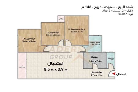 • 3 غرف 2 ريسيبشن 2 حمام